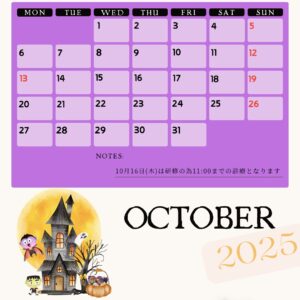 成瀬歯科医院の10月の診療カレンダーになります。